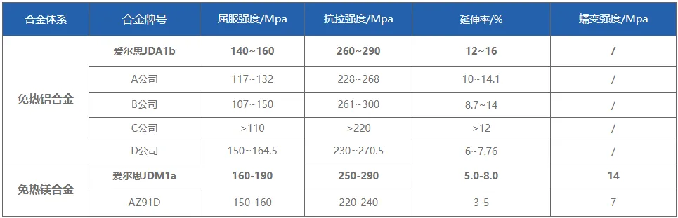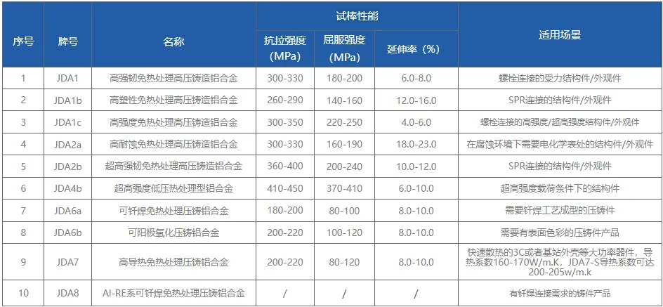 一、JDA系列免热处理型高强韧压铸铝合金材料